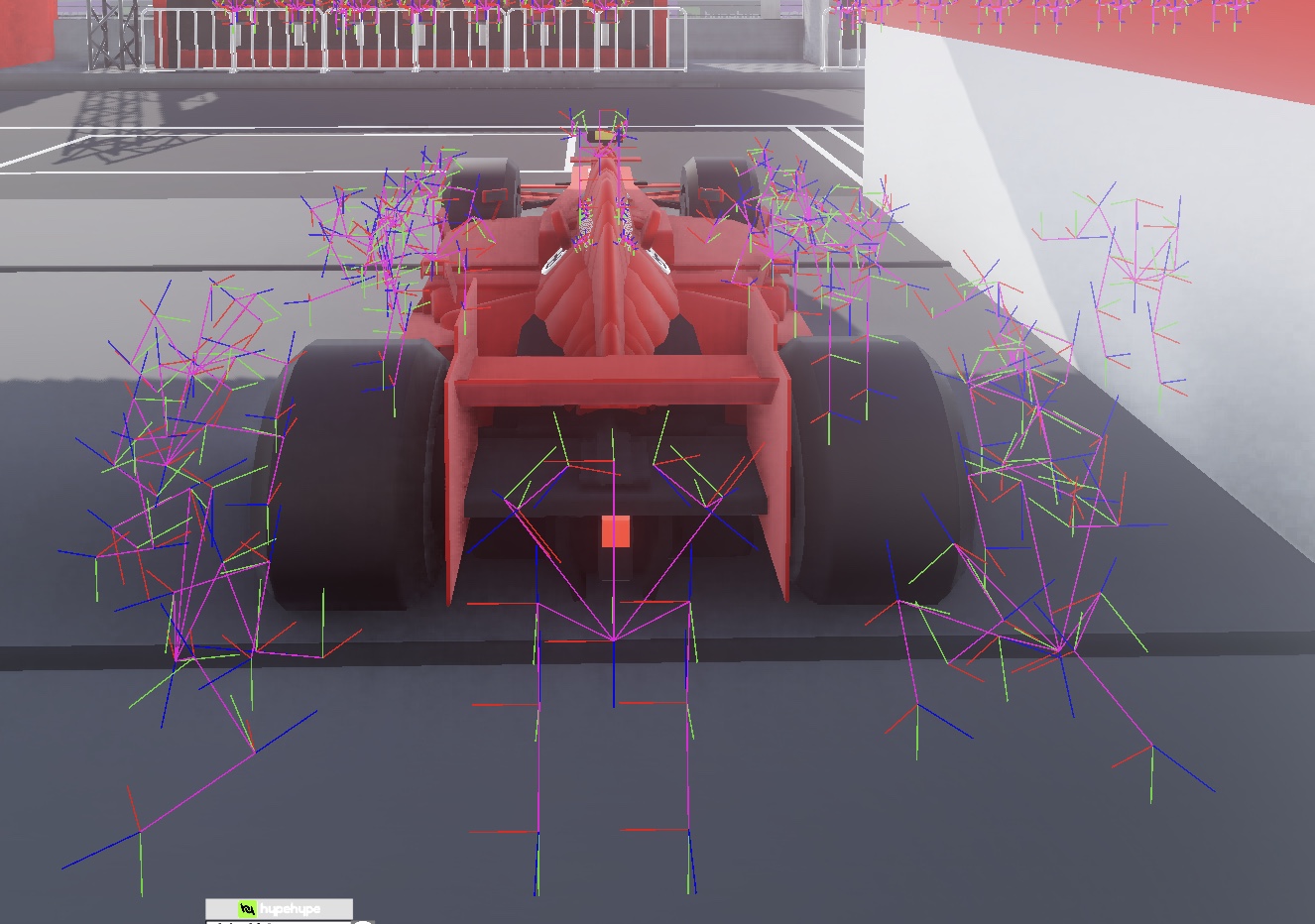 A good debug visualization also reveals issues you weren't even aware of. One curious find was a racing game Hype in which the racing car carries around with it a fully animated but invisible pitstop crew! That's obviously bad for performance and something that the animation system needs to deal with in a UGC platform.